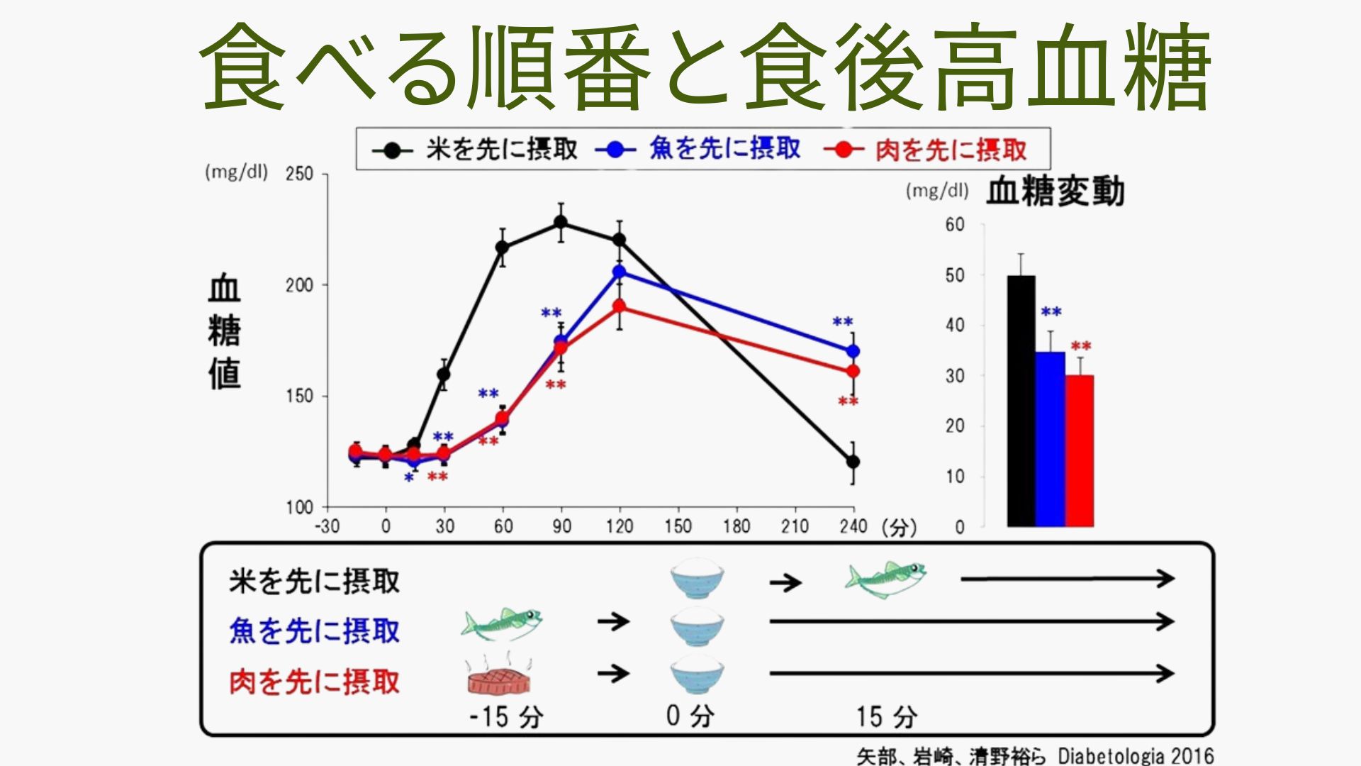 まったく同じ内容を食べる場合でも、野菜から食べるときと、糖質から食べるときでは、血糖の上昇の仕方は異なります。