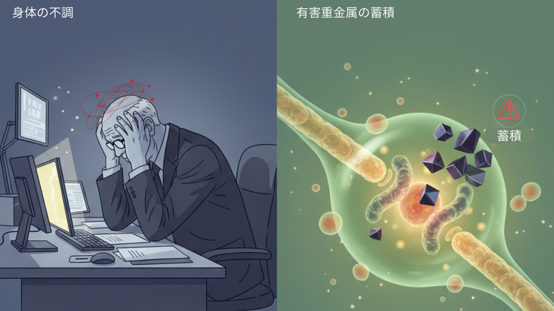 原因がはっきりしない慢性的な身体の不調やパフォーマンスの低下。それはもしかすると、現代社会を生きる私たちが避けられない「有害重金属」の蓄積による、身体からのSOSサインかもしれません。